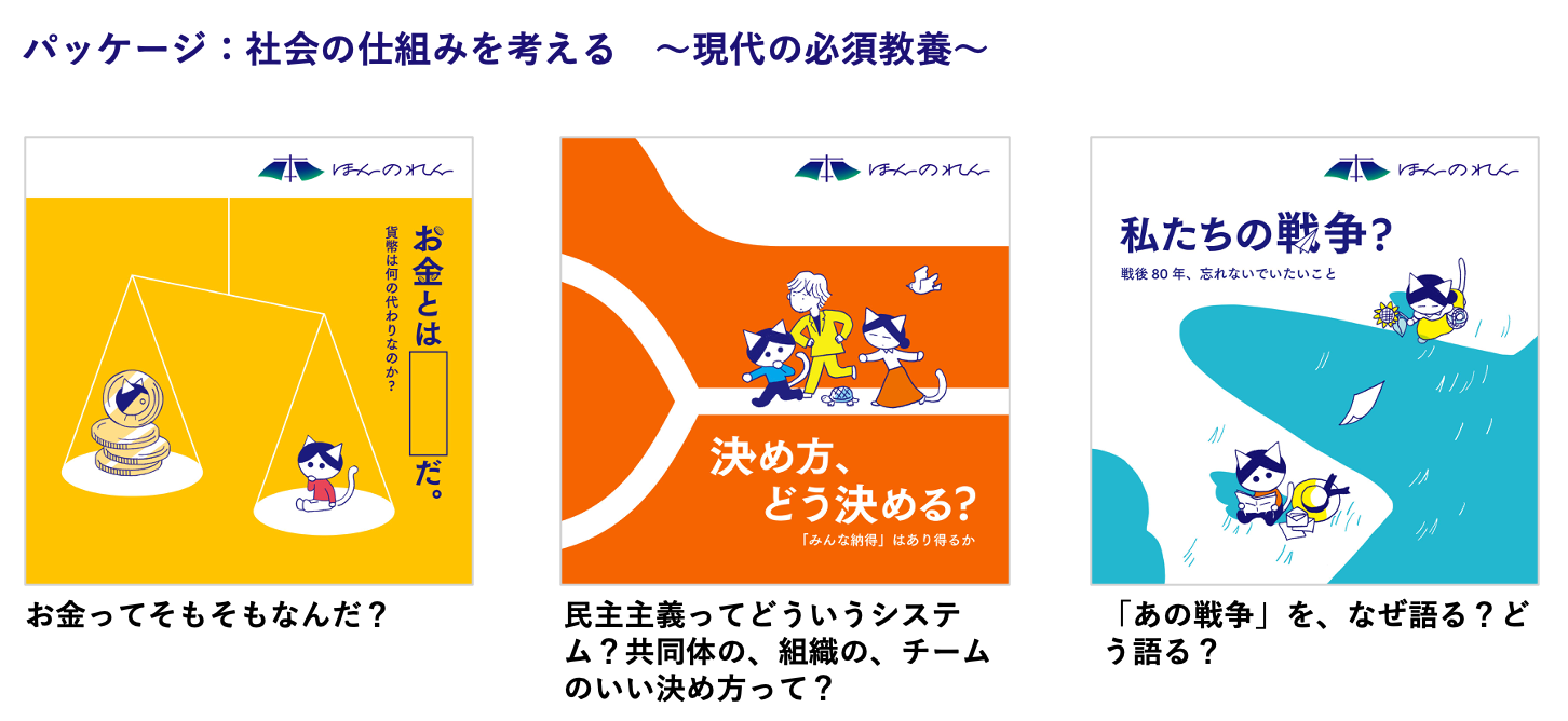 「ほんのれん」では、3テーマをパッケージにして活用いただくことをおすすめしています。テーマを横断してワークショップすることで、より多角的に思考・探究することが可能になります。