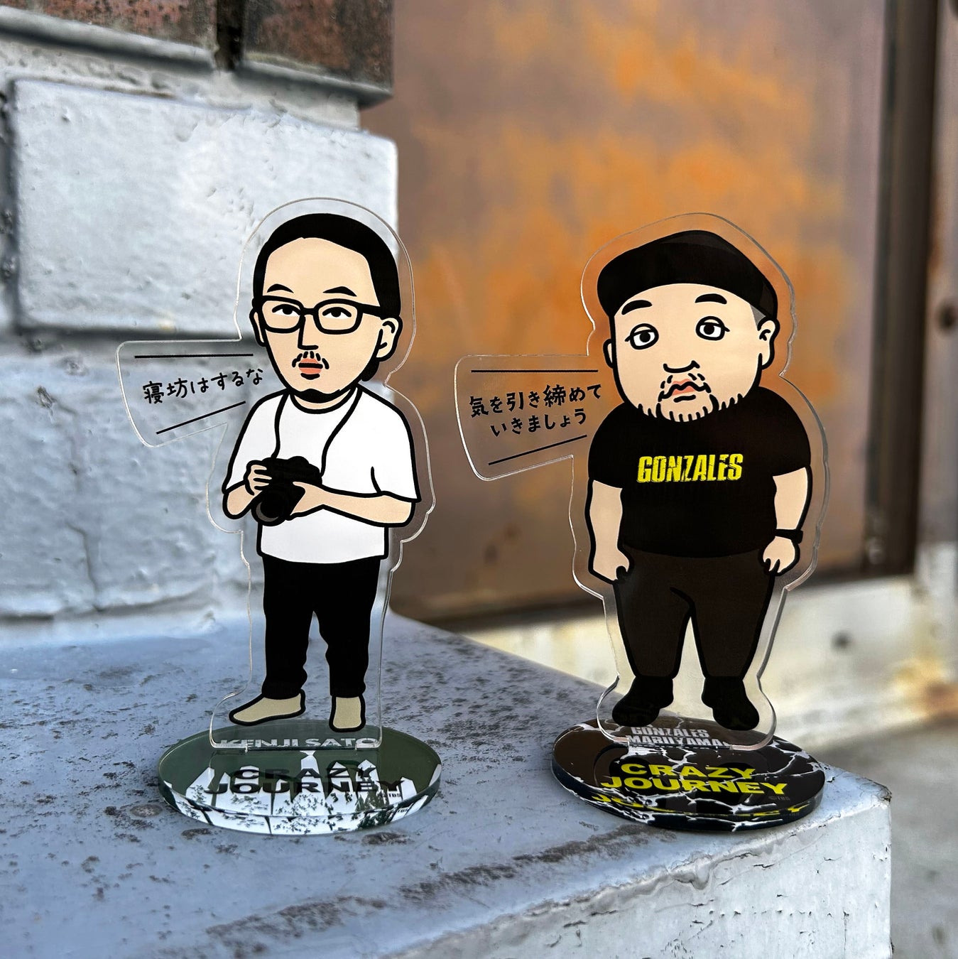 クレイジージャーニー「丸山ゴンザレス」と「佐藤健寿」のイラスト旅守りアクリルスタンド。