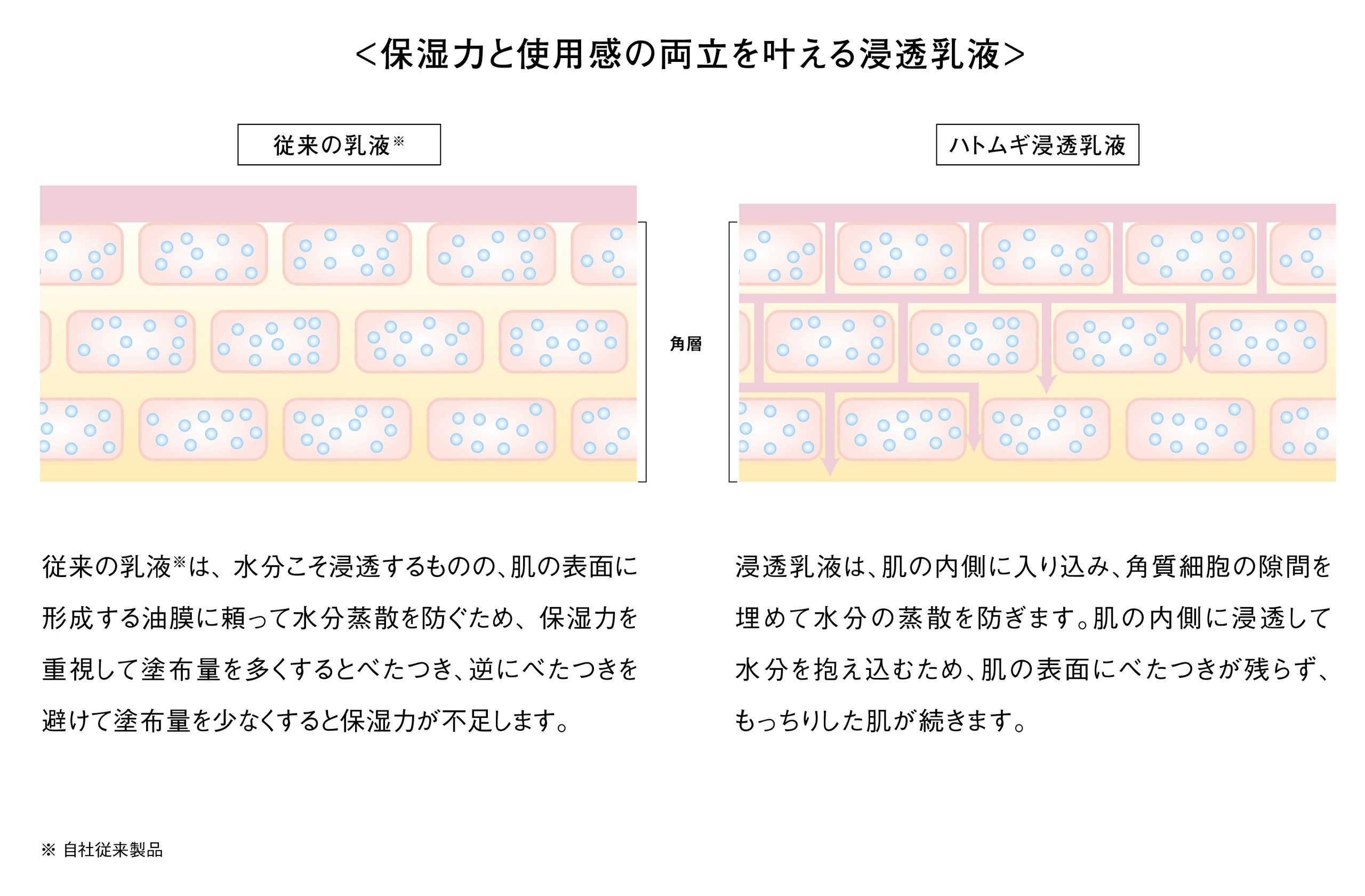 角層に浸透して水分を抱え込むので、もっちりした肌が続きます。