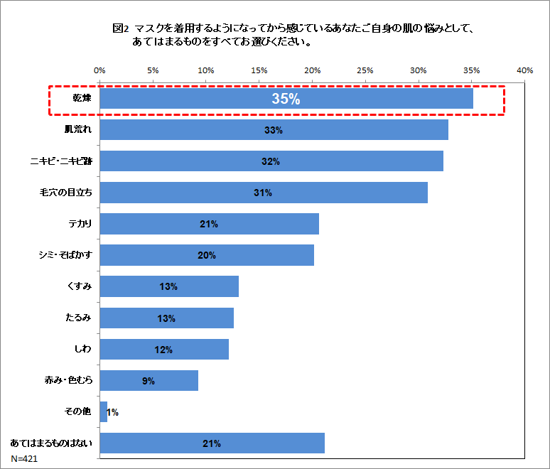 マスク着用によって、肌の乾燥に悩んでいる様子がうかがえる結果となりました。