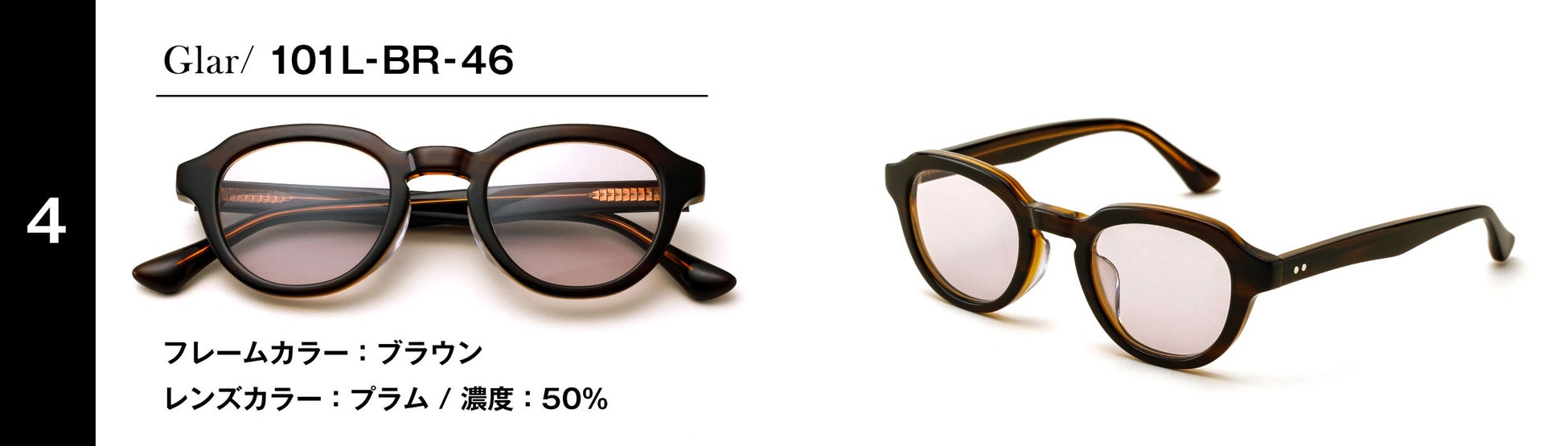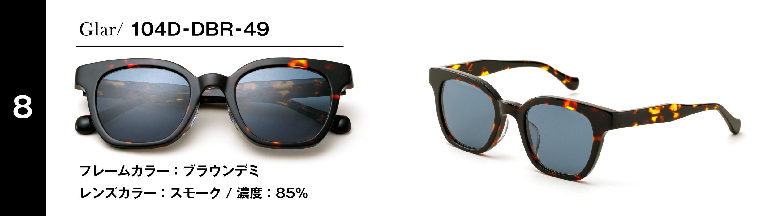 メガネを熟知したメガネ店がおすすめする『トレンドデザイン』のフレームや、レンズのカラーや濃度が異なる8バリエーションをご用意いたしました。