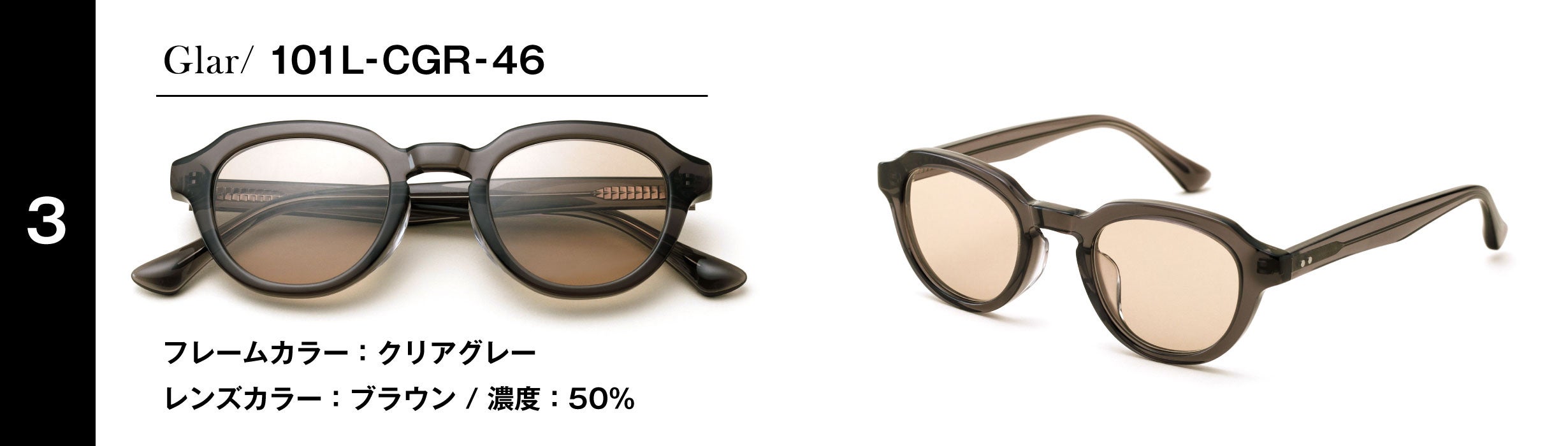 3. 透け感のあるグレーカラーのフレームにブラウンカラーのレンズ