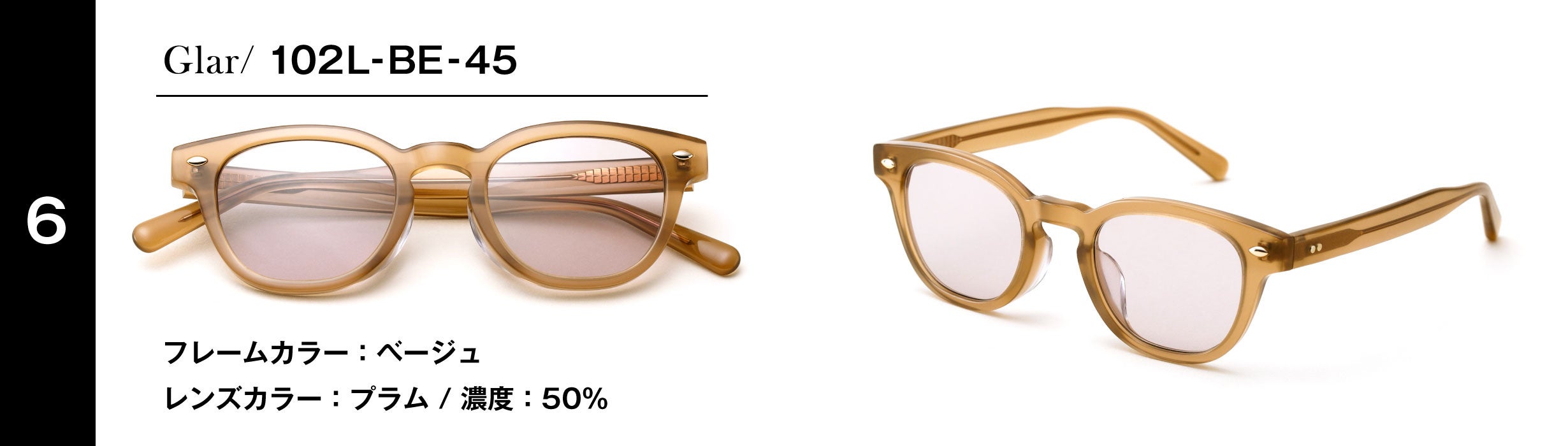 6. 透け感のあるベージュカラーのフレームに、グレートーンのパープルカラーのレンズ