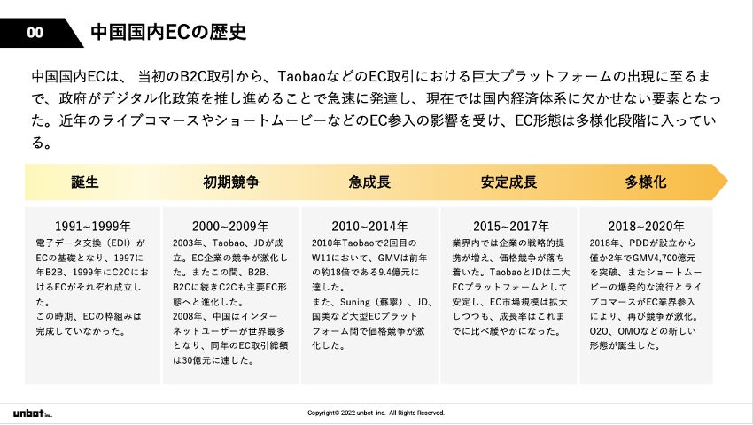 中国・東南アジア市場向けにEC店舗運営支援を行う、株式会社unbot(本社:東京都品川区、代表取締役社長:中町秀慶 )は、ブランド様の中国EC担当者、中華圏デジタルマーケティングに携わる方向けに、有料レポート『中国における最新のEC&SNS市場動向(2022)』を販売することをお知らせいたします。