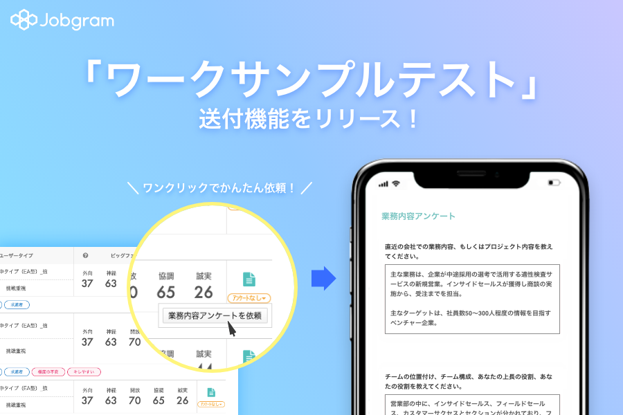 【適性検査クラウドJobgram】採用選考において、仕事上のスキルを可視化できる「ワークサンプルテスト」機能をリリース