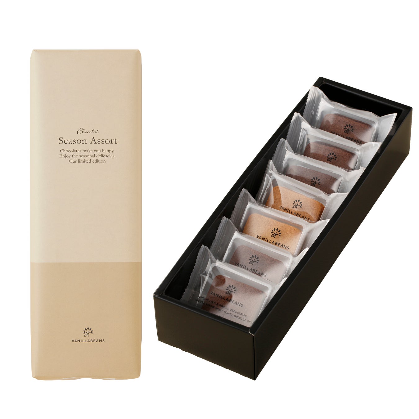 優しく洋酒が香るモンブランをイメージしたショーコラ「ホワイトモンブラン」2個、くるみとチョコレート、メープルシロップをバランス良く配合した「メープルナッツ」2個、通年人気の定番ショーコラ「リッチミルク」を3個詰め合わせた限定の7個入アソートです。 |