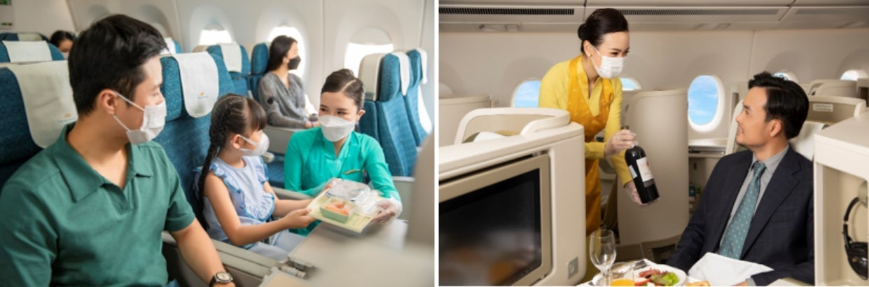 機内では、本場ベトナム料理を含むバラエティーに富んだ機内食や、エアバスA321neoでのワイヤレスストリーミング、エアバスA350およびボーイング787での最新プログラムを含む機内エンターテイメントなど、革新的で充実した機内体験をお楽しみいただけます。また、ビジネスクラスでは、上質な毛布やリネン類を揃え、長距離フライトをリラックスしてお過ごしいただけます。