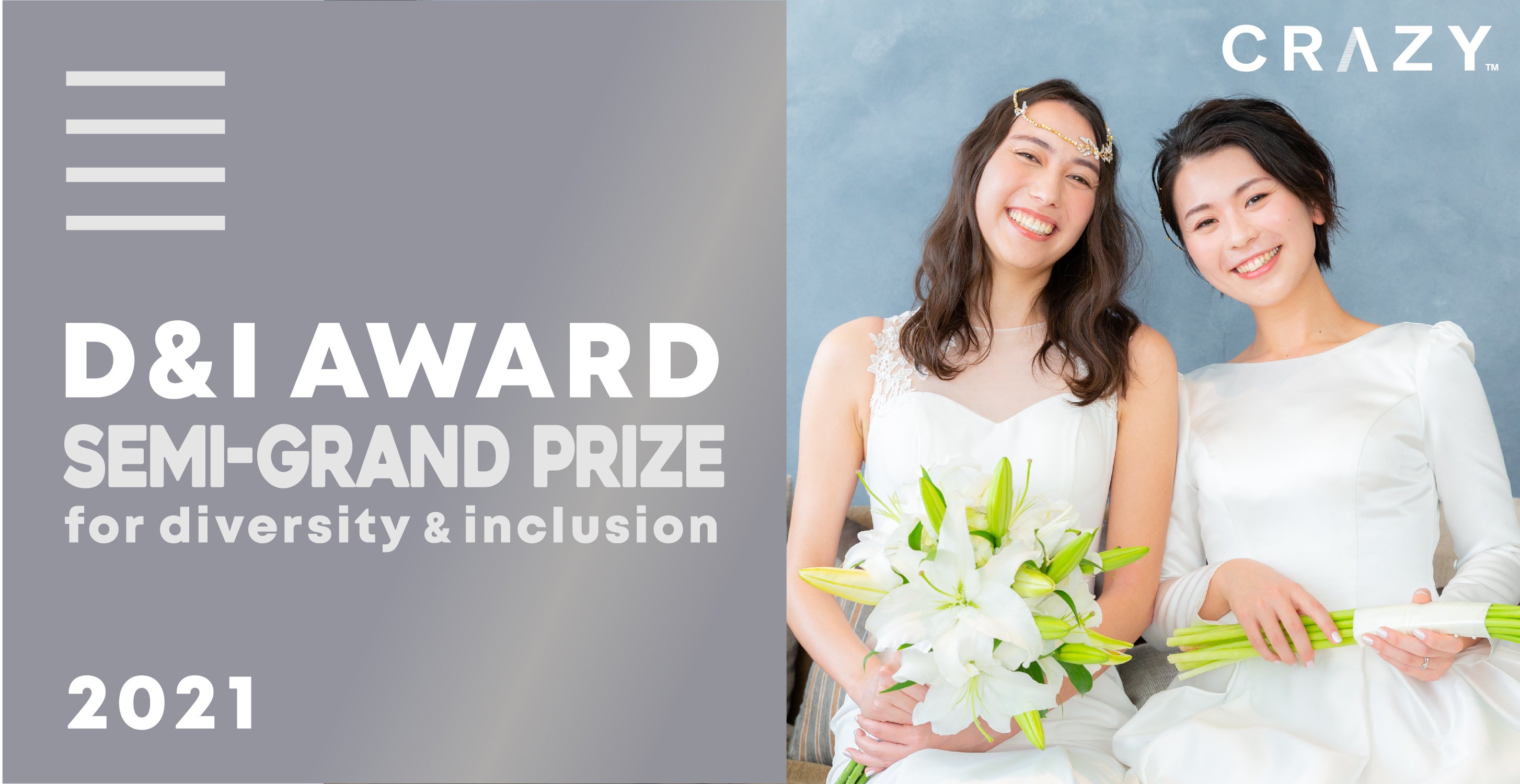 パートナーシップの分断の解消をパーパスに掲げ、CRAZY WEDDINGを運営する株式会社CRAZY(東京都渋谷区/代表取締役社長 森山和彦)は、ダイバーシティ&インクルージョン(D&I)に取り組む企業を認定・表彰する「D&I Award 2021」において、「D&I Award賞」を受賞いたしました。