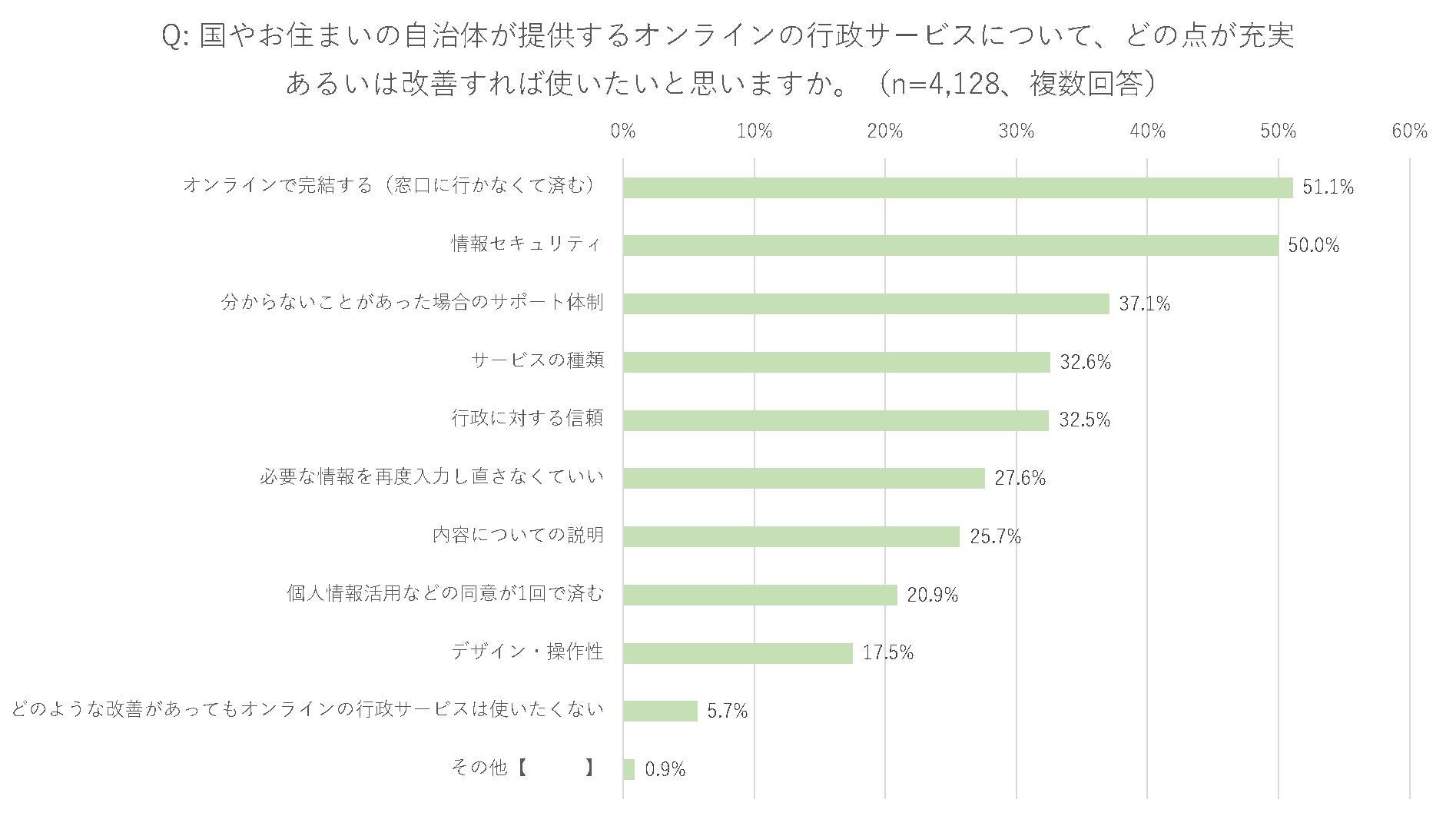 FINDINGS⑤:行政オンラインサービスに求める改善点は「オンライン完結」と「情報セキュリティ」