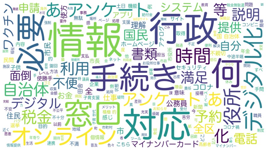 - 対応:「対応が悪い、遅い」「それぞれの窓口で手続きしないといけない」「デジタル化・オンライン化に対応していない」