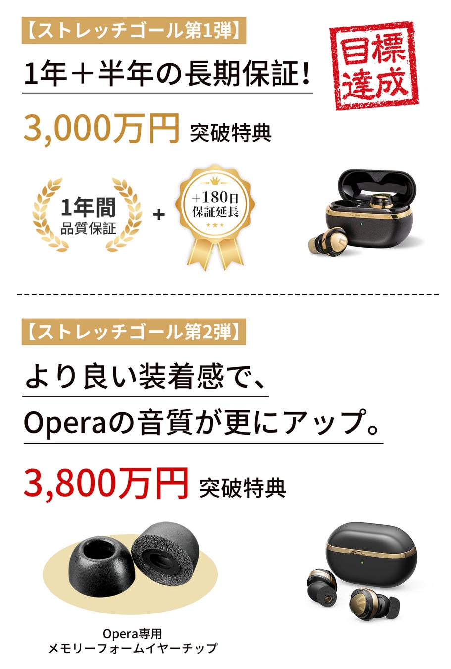 応援総額3,800万円を突破した場合、Operaシリーズのイヤホン1台ごとに、