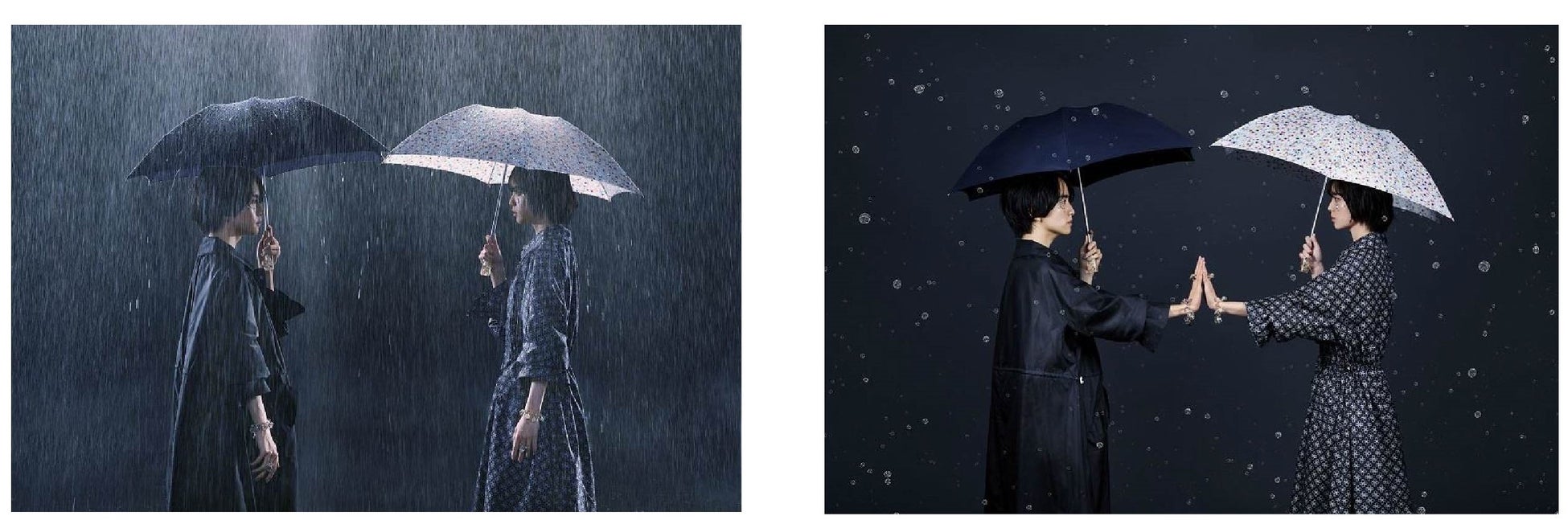 対比したふたつは「雨」と「人」。雨と人が一対になり作用し合う現象にインスピレーションを得て、ビジュアルシューティングを行いました。