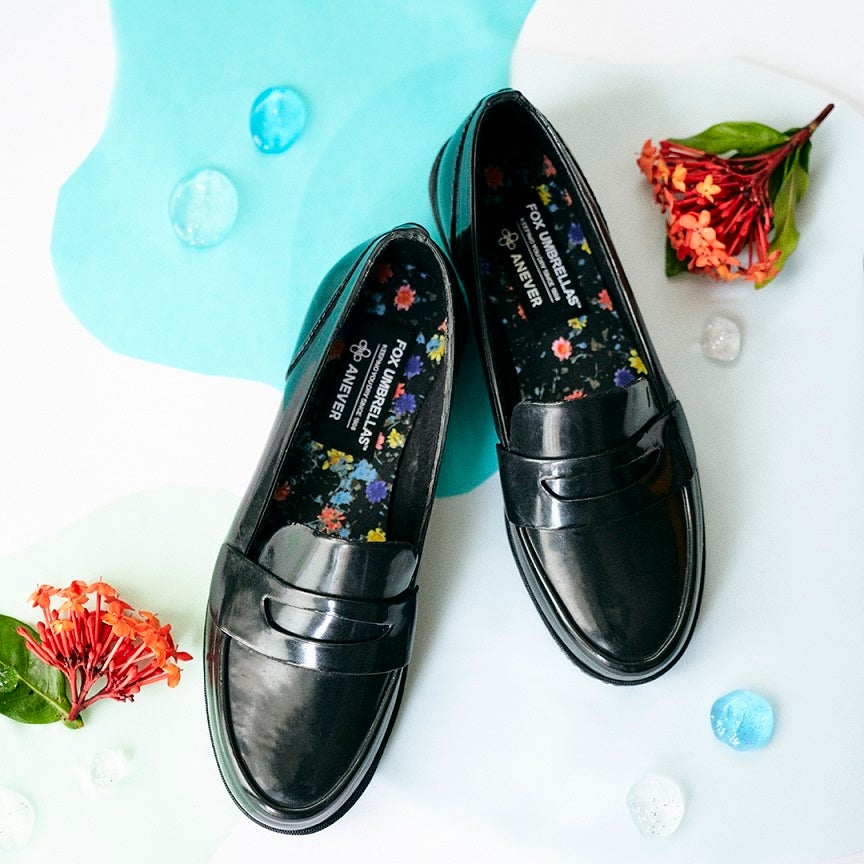 レインシューズは、1868 年にロンドンで創業し、150年以上の歴史を誇る FOX UMBRELLAS(フォックスアンブレラ)とのコラボレーションアイテム。晴雨兼用のローファー型のレインシューズとなります。中敷きには、本物の花を閉じ込めたアクリル樹脂をスキャンしてつくられたセダムフラワープリント花柄が施されています。