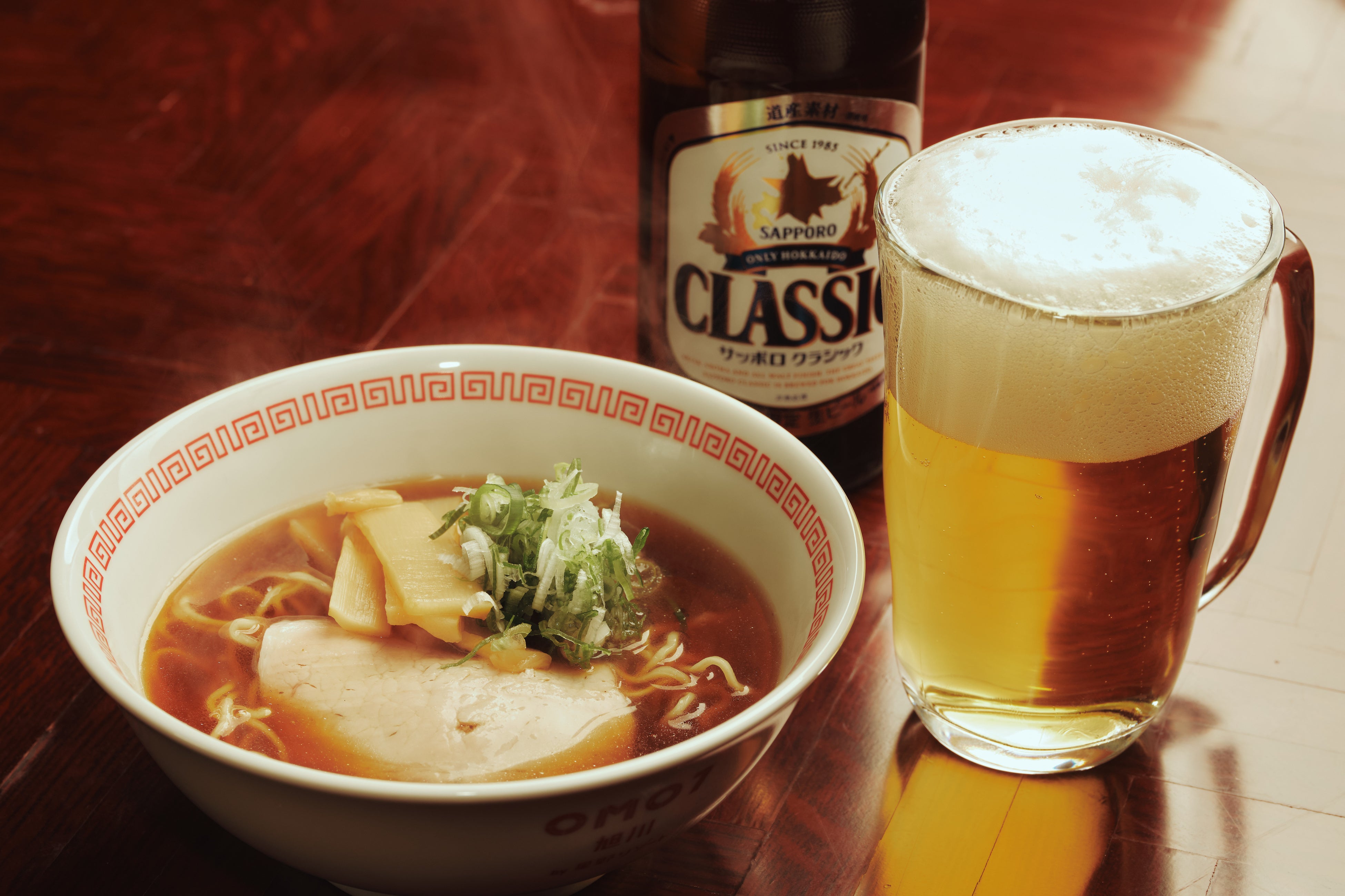 旭川醤油ラーメンとサッポロビールの最強コンビ