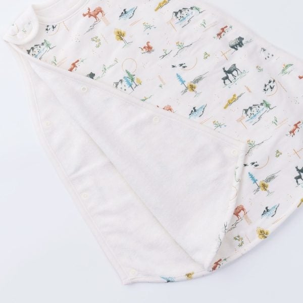 海外ではSIDS(乳幼児突然死症候群)の予防のため、スリーパーの使用が義務化されている託児所もあります。Haruulala organicのスリーパーは股ボタンで、寝ている間に、はだけて顔にかかる心配がなく、お母さん・お父さんも安心してお休みいただけます。