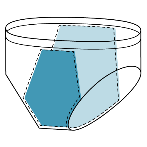 吸収面は、おなか側、おしり側ともにウエスト部分まであるので、漏れの心配なく安心です。