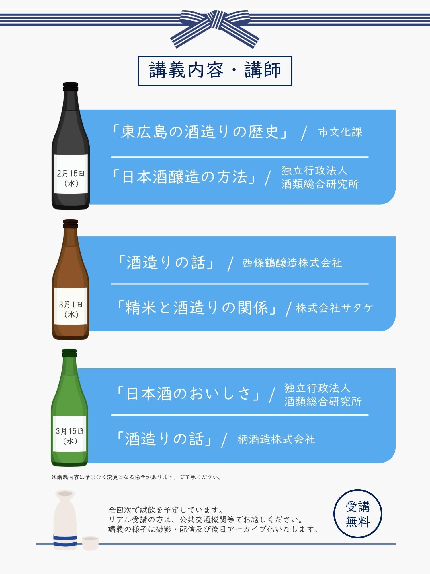 いつもの日本酒をさらに美味しく!令和4年度東広島市立日本酒大学を開講します!