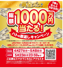 ■内容:総額1000万円分が当たるキャンペーンを実施。イトーヨーカドーのお買い上げレシート税込5000円分以上でご応募いただけます。キャンペーンサイトにアクセスいただくか、スマホで二次元バーコードを読み込んで、レシートの写真を送るだけで簡単に参加が出来ます。
