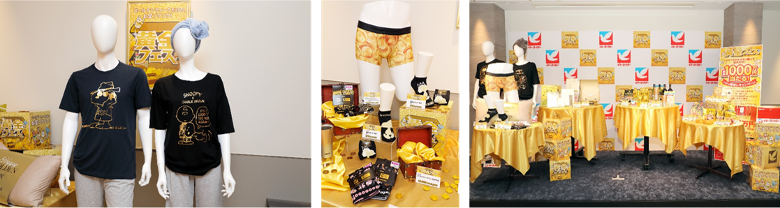 また、今回の「黄金フェス」の開催をより盛り上げるために、女優の「傳谷英里香」さんを招き、商品説明会を行いました。傳谷さんには「黄金の衣装」を身にまとい、金色の商品の中から、とっておきの商品を選んでいただきました。