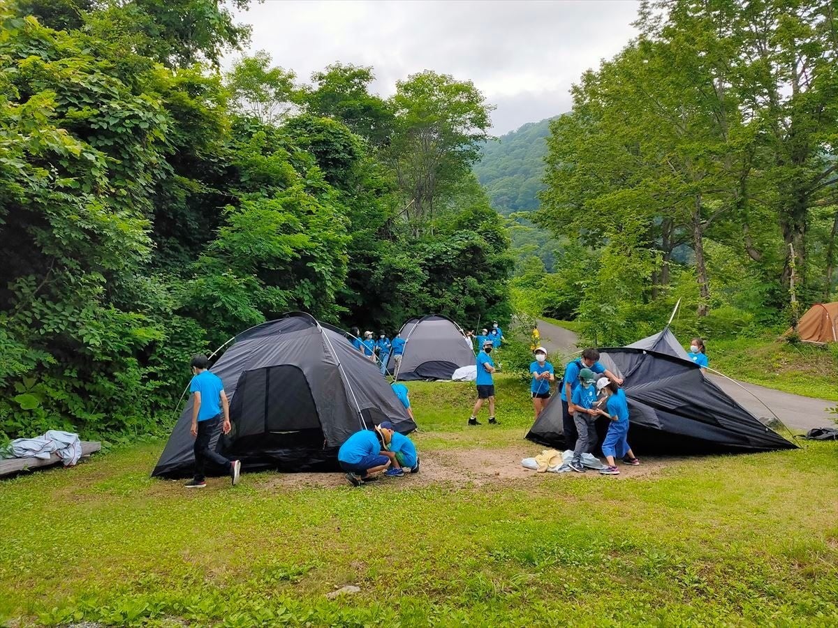親元を離れ、子どもたちだけで力を合わせてテントを張り、登山にもチャレンジするー。