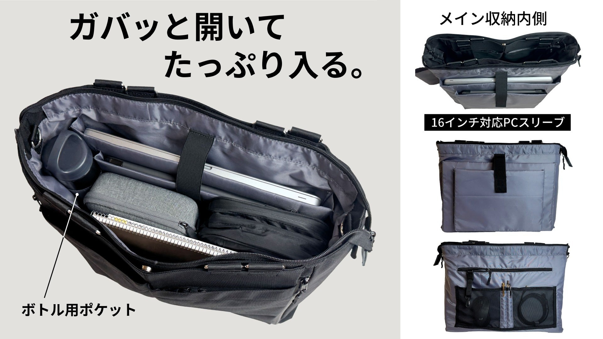 16インチPCもすっぽり!6層構造・19ポケットで整理上手な大容量トート