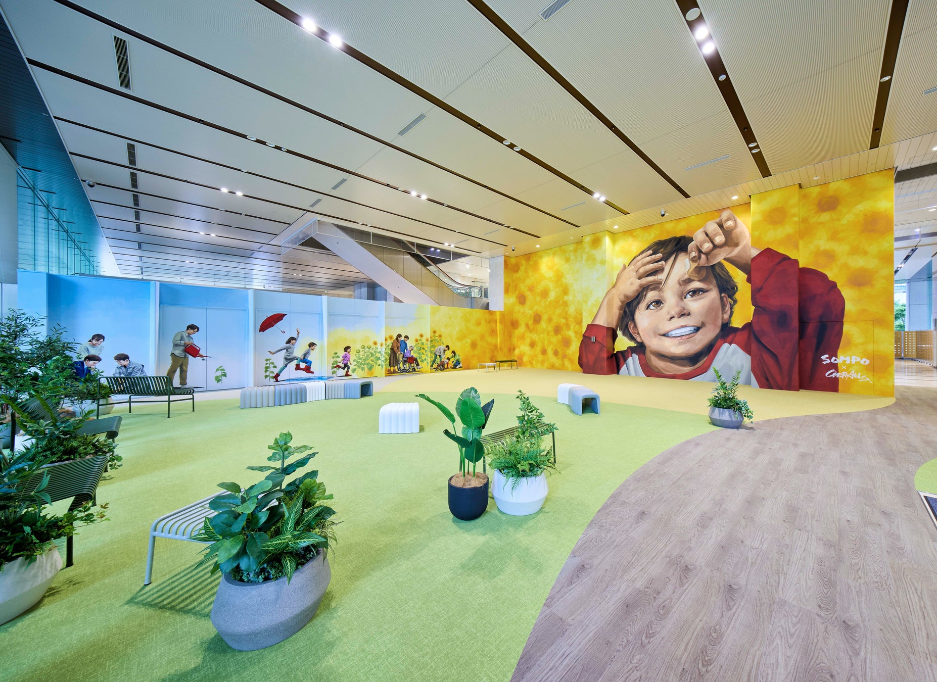 この壁画がSOMPOで働く人々と世の中を元気づけ、希望になるように。