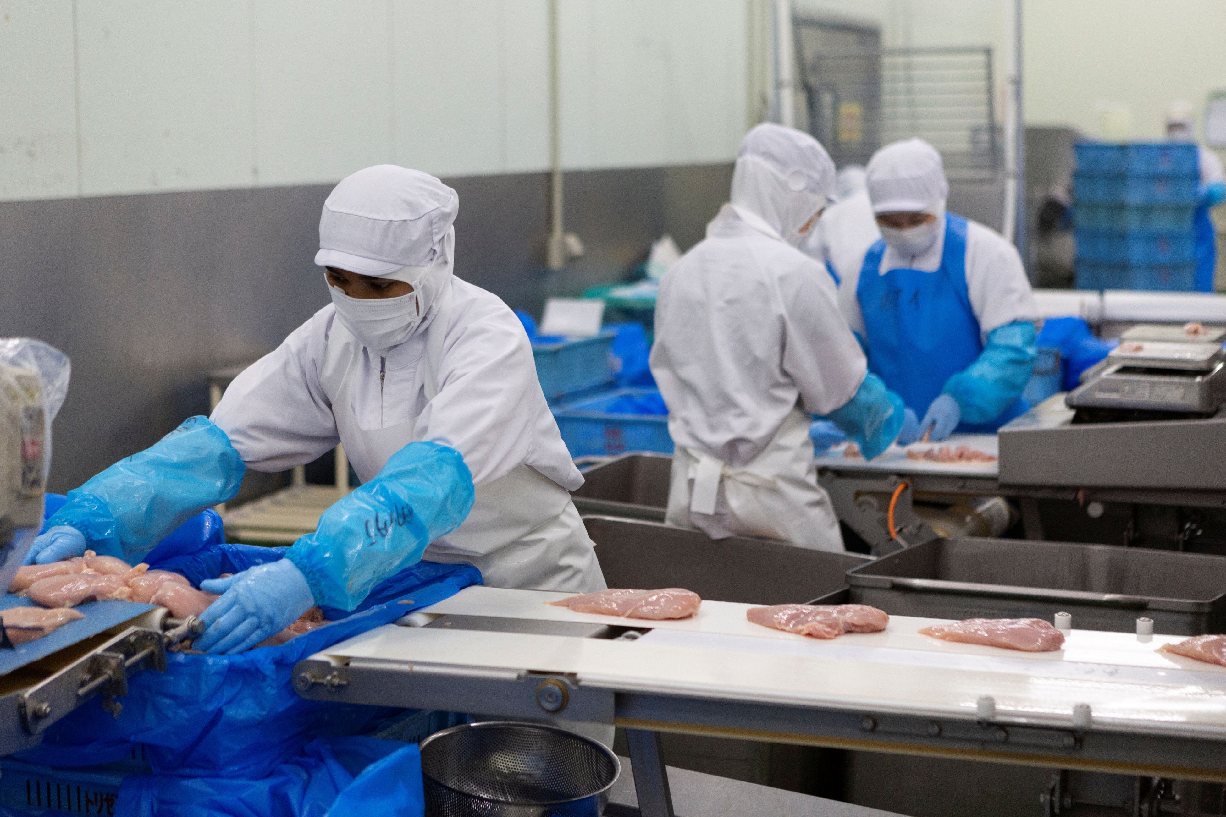 トリゼンフーズ糸島工場は2018年に竣工、養鶏場である唐津と物流拠点である福岡市内の中間に位置し、手作り感のある立体成型でつくるチキンカツや唐揚げ、とり天などの未加熱製品を製造。成型から包装、梱包まで直結のライン設計により大量生産を実現する。「博多華味鳥」の真髄である水たきスープもここで作られる。他にも精肉カットを行う佐賀工場、「自家製明太子」、「博多ぽん酢」を製造する箱崎第二工場など、それぞれの強みを生かした工場を展開している。