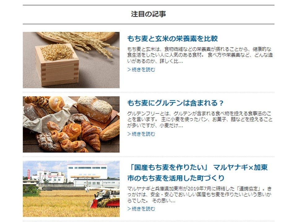 ・もち麦ニュース …マルヤナギのもち麦に関するイベントや取り組みについて、旬の情報をお届け