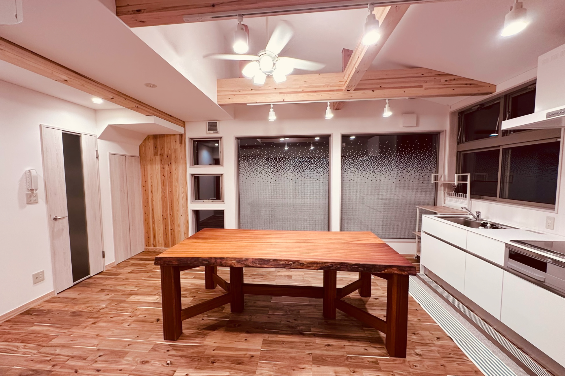 本建物は日本CLT技術研究所のオリジナルCLTパネル工法『LC-core構法』を採用。日本においてコンドミニアムをCLTパネル工法で建築することは珍しく、LC-core構法で初めてのコンドミニアム建築となりました。内観は随所でCLTが現しとなっており、天然木の美しい木目を楽しむことができます。