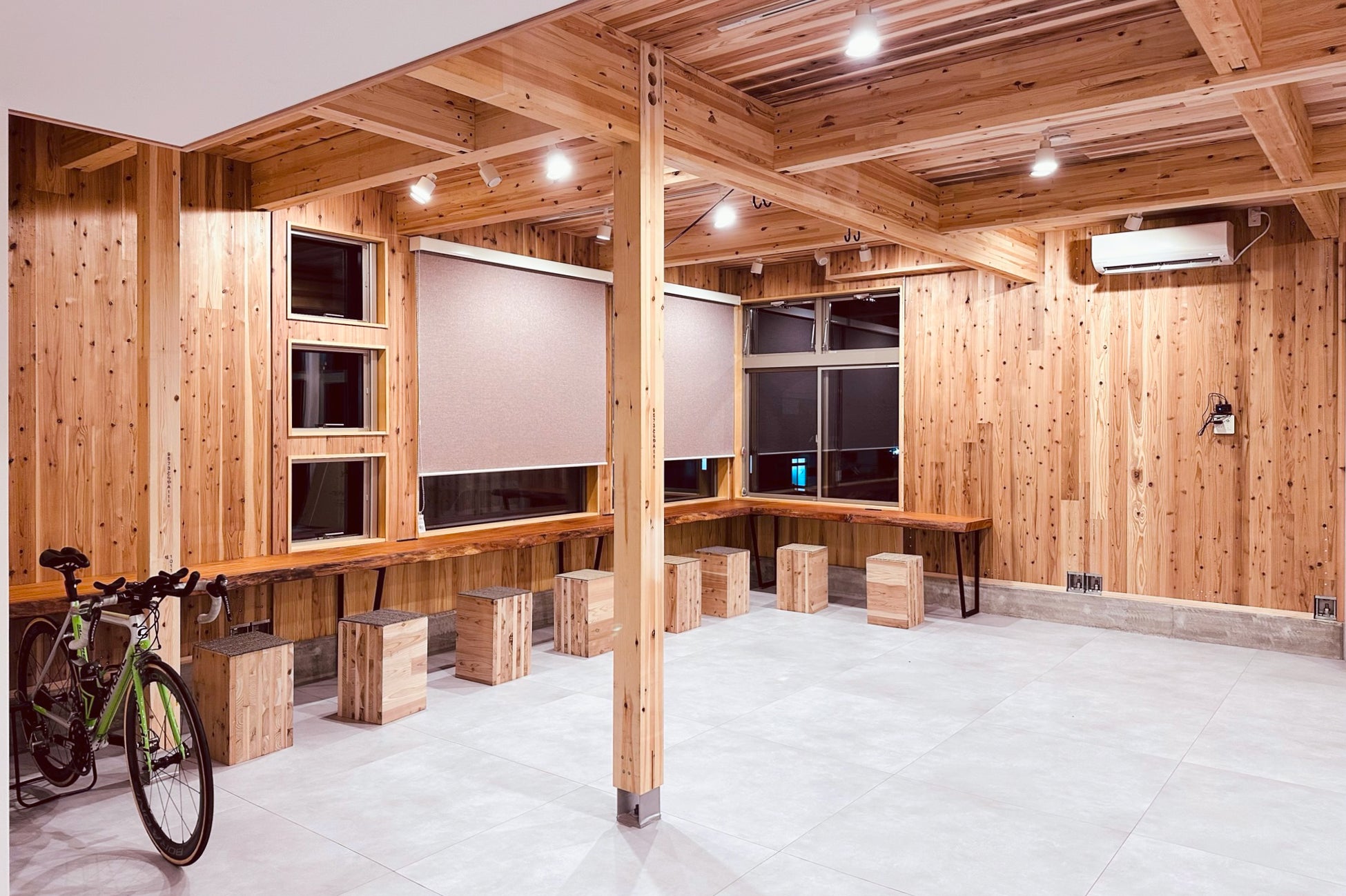 本建物の周辺には、4組が宿泊可能でBBQ設備を完備したアパートタイプのコンドミニアム『TORAYA(とらや)』、8名まで利用可能な貸別荘『Cotora(ことら)』を展開しています。入田浜海水浴場まで徒歩約5分という立地条件から、家族連れやサーフィンを楽しむ方に人気のエリアであることを鑑み屋外にもシャワーを設置しています。