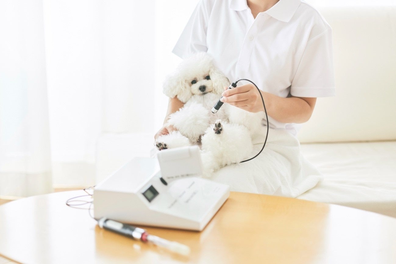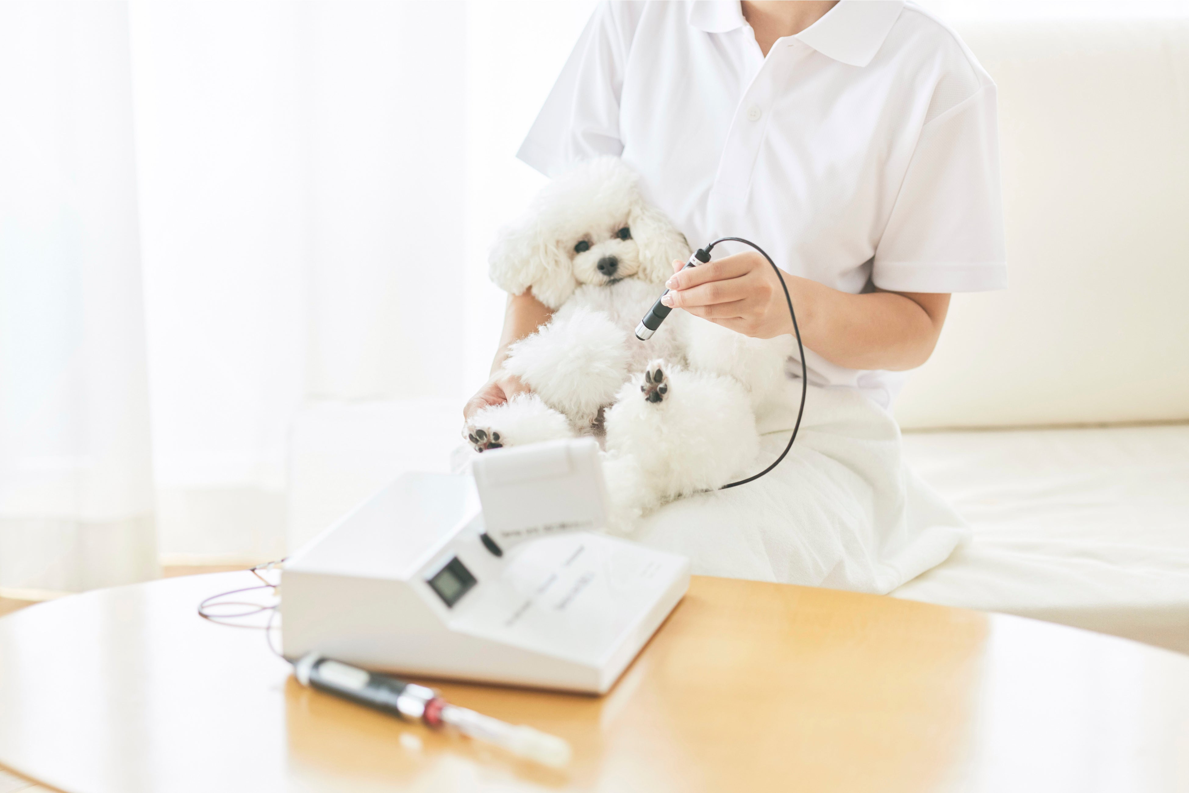 お肌の「水分量」や「皮脂量」などを専用の機械で測定することで、ワンちゃんのお肌の状態をチェックします。デパートなどで化粧品を選ぶ際にお肌の測定をしてもらうように、手軽に愛犬のお肌の状態を確認でき、その子に合ったケア方法を提案します。継続して通っていただくことで、ワンちゃんのお肌の健康維持に役立てられます。