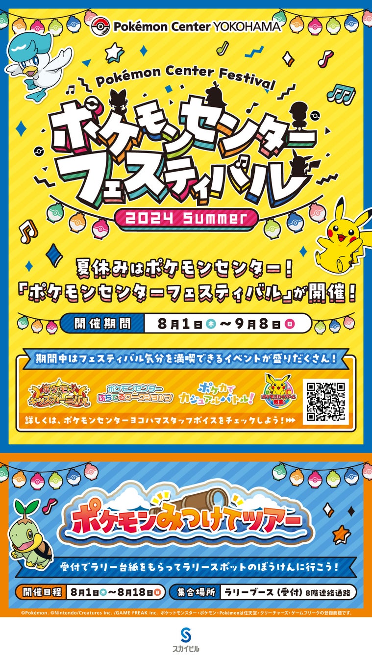 株式会社横浜スカイビル(横浜市西区高島二丁目/代表取締役社長 水村慎也)が運営・管理するスカイビルでは、2024年8月1日(木)より、ポケモンセンターヨコハマ(スカイビル内マルイシティ横浜8階)にて「ポケモンセンターフェスティバル」を開催いたします。