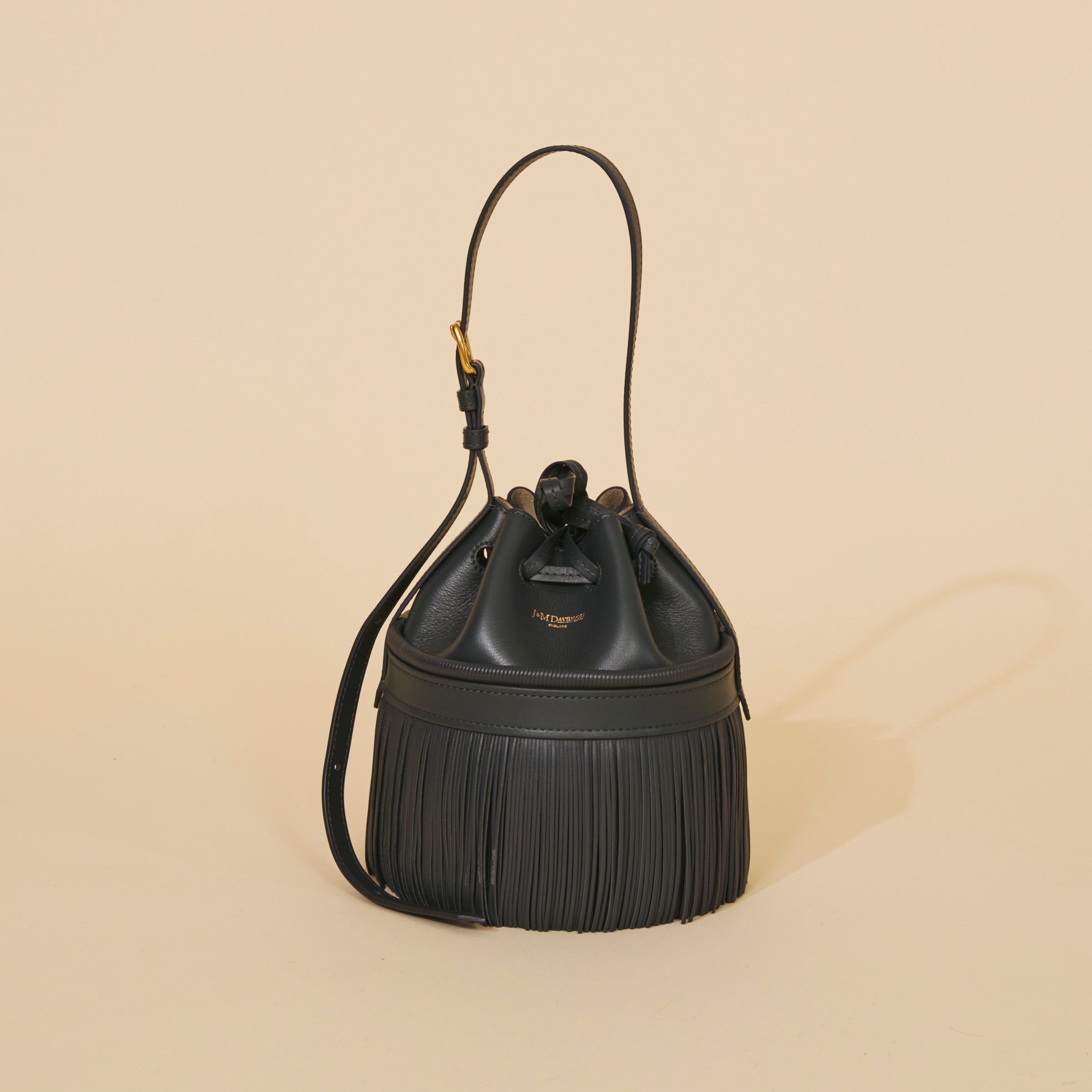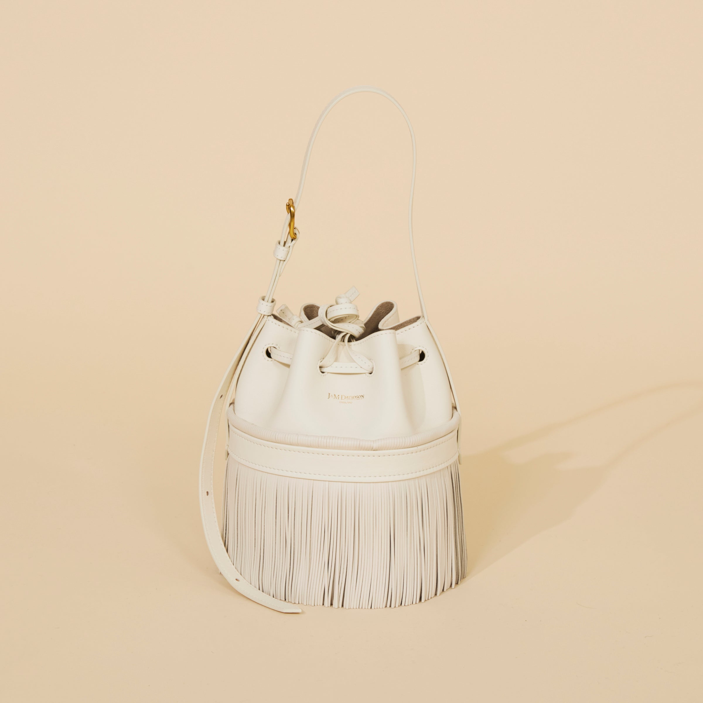 ”CARNIVAL”をよりシンプルに表現した“Anniversary Carnival”は、ブランドのヘリテージやクラフツマンシップに、どこか懐かしさを感じさせるようなデザインとモダンさが融合したスペシャルなコレクション。リュクスな雰囲気を纏った柔らかなカーフレザーと、歩くたびに揺れ動く繊細なフリンジ。ボディ中央に配したバンドにマークされた、ループ状のフリンジも小気味良いアクセントに。ストラップには、J&M DAVIDSONのルーツである「ベルト」のゴールドバックルが付き華やかさもプラス。