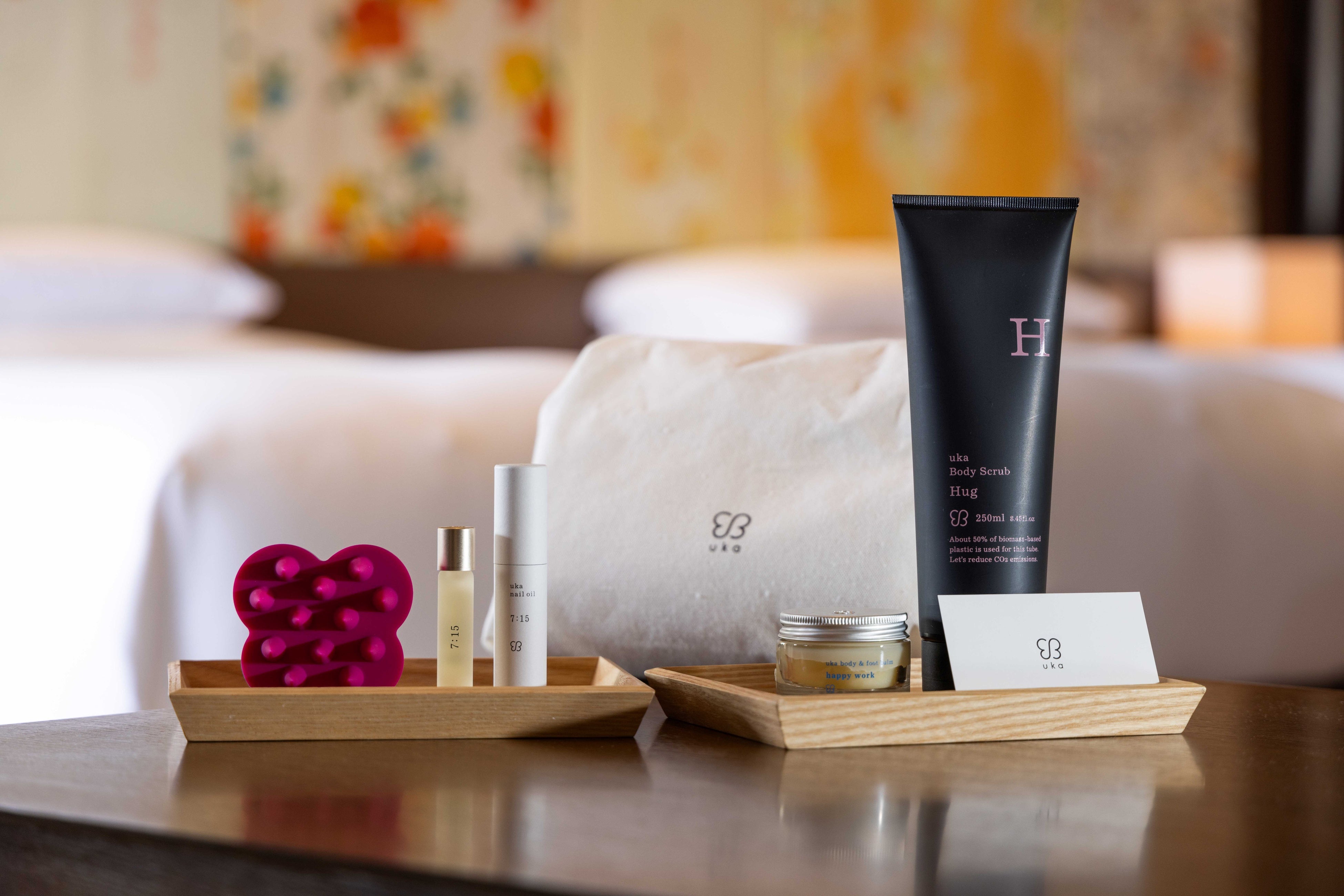 プラン特典として、日本発トータルビューティーカンパニー ukaより、旅先でもご自身をいたわっていただけるよう特別にセレクトしたアメニティーセットとTouzanバーのスペシャルカクテル&スナックをご用意いたします。とっておきのホテルステイで、心満ちる旅時間をお過ごしください。