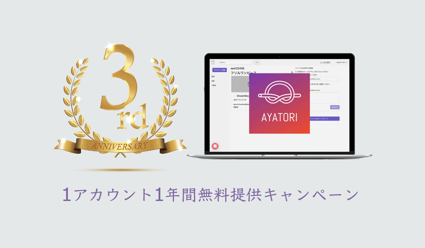 <AYATORI 3周年記念>1アカウント(1名)1年間無料提供キャンペーンを実施します!