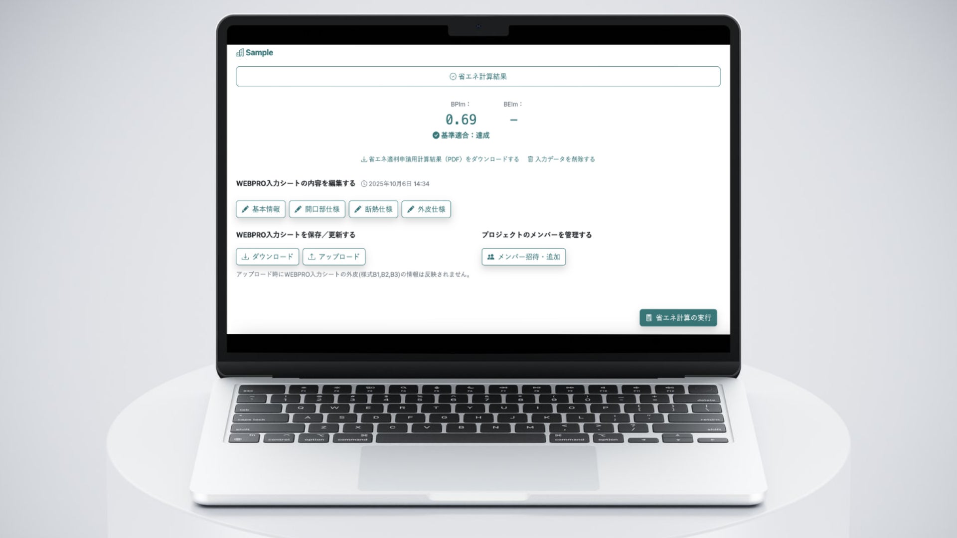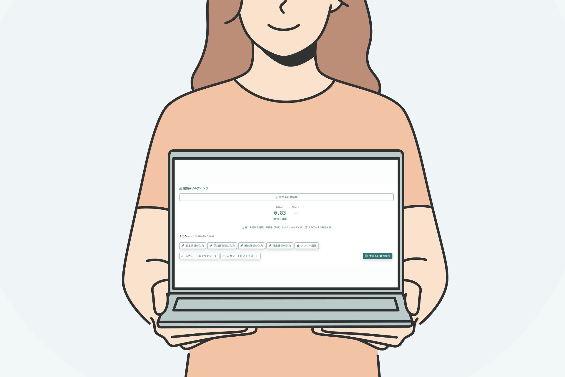 ※2 WEBPRO入力シート:国土交通省が提供する建築物省エネ法の一次エネルギー消費量算定プログラム(WEBPRO)用の入力ファイル。建築物の外皮仕様・設備仕様などを入力して、省エネ性能(BEImなど)を算定・申請するために用いられます。