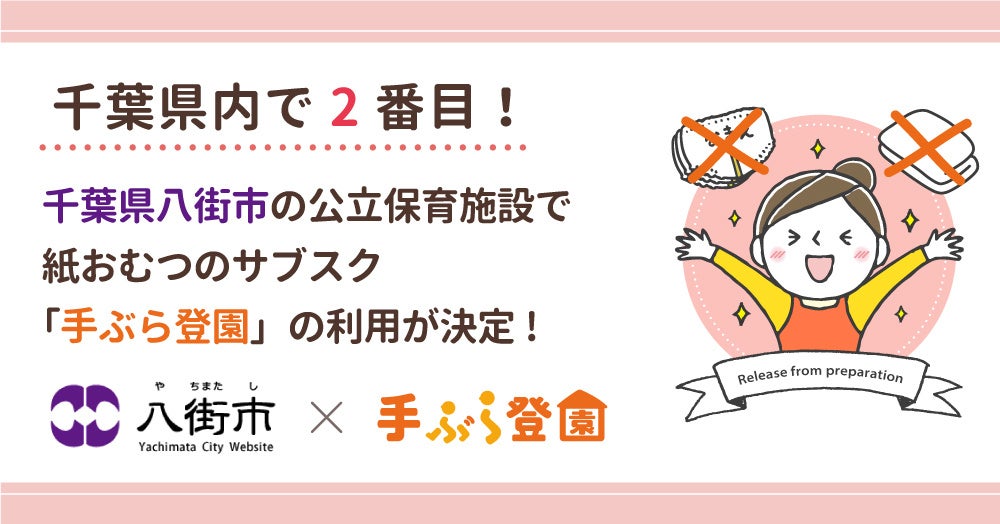 BABY JOB株式会社(本社:大阪府大阪市、代表取締役 上野公嗣)は、2022年7月より千葉県八街市の全ての公立保育施設において、保育施設向け紙おむつのサブスク「手ぶら登園」が利用されることをお知らせします。
