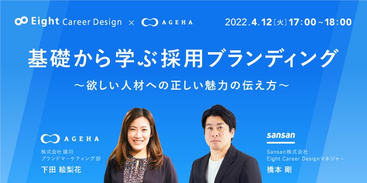 そのようなお悩みを解決すべく、Sansan株式会社 Eight事業部 Eight Career Design マネジャー 橋本剛氏をお招きし、「攻めの採用活動」の必要性について、また、「採用ブランディング」の基本を解説いたします。