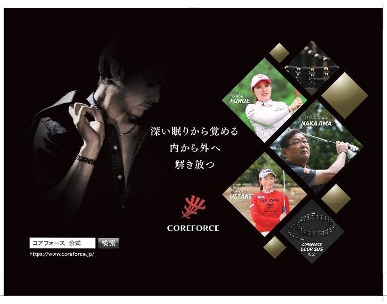 株式会社ゆうき(埼玉県久喜市:代表取締役社長 小田 耕二)が販売するコンディションを最適化するアクセサリー「コアフォース」は、プロゴルファー中嶋常幸プロ(所属:静ヒルズCC)と古江彩佳プロ(所属:富士通)、植竹希望プロ(所属:サーフビバレッジ)が出演する屋外広告を2022年5月1日(日) から、大阪駅前地下道のLED電照看板にて掲出します。