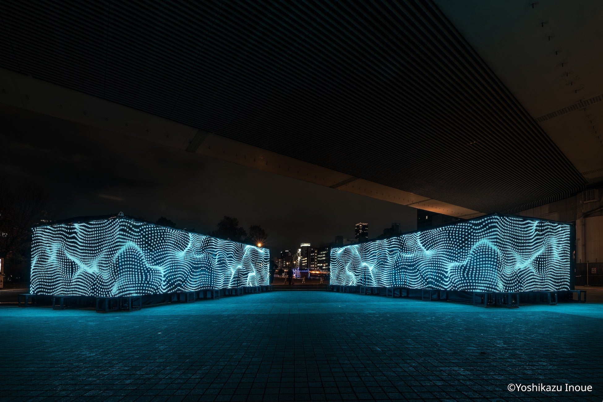 テクノロジーを駆使し新たな表現を追求するクリエイティブ集団「MPLUSPLUS / エムプラスプラス」が大阪の冬の新たな魅力創出のために光の演出をプロデュース。12月14日(水)から大阪・中之島で「大阪来てな!キャンペーン」の冬のイベントとして開催中の「水と光のワンダーナイト in 中之島」に2種類のインスタレーションを初披露しました。「壮大なライブ演出を街に再現する」をテーマに、日頃エムプラスプラスがミュージシャンのドームライブやスポーツイベントで行っている非日常感を創り上げました。