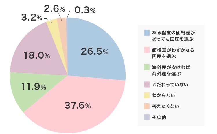 国産こだわり派が6割をこえる!こだわりのない方は2割弱