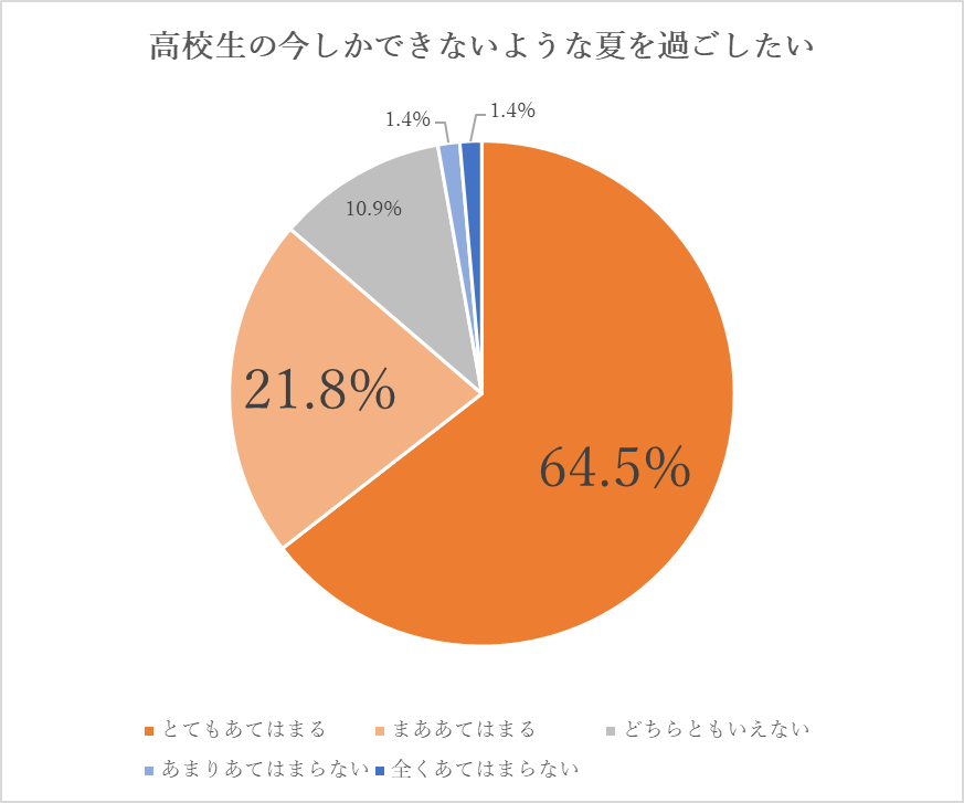 また「高校生の今しかできないような夏を過ごしたい」と86%が回答。