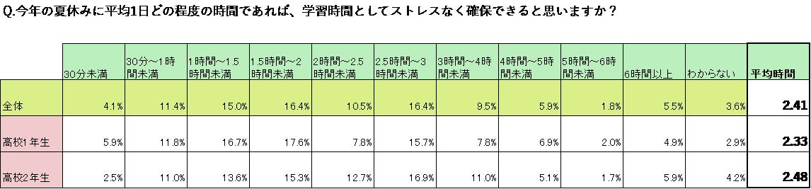 【受験予定の高1-2生の夏休みに関するアンケート】86%以上の高校生が“今しかできない楽しい夏休み”を今年は期待!夏を楽しむためにストレスなく続けられる夏休みの平均勉強時間は「2.41時間」