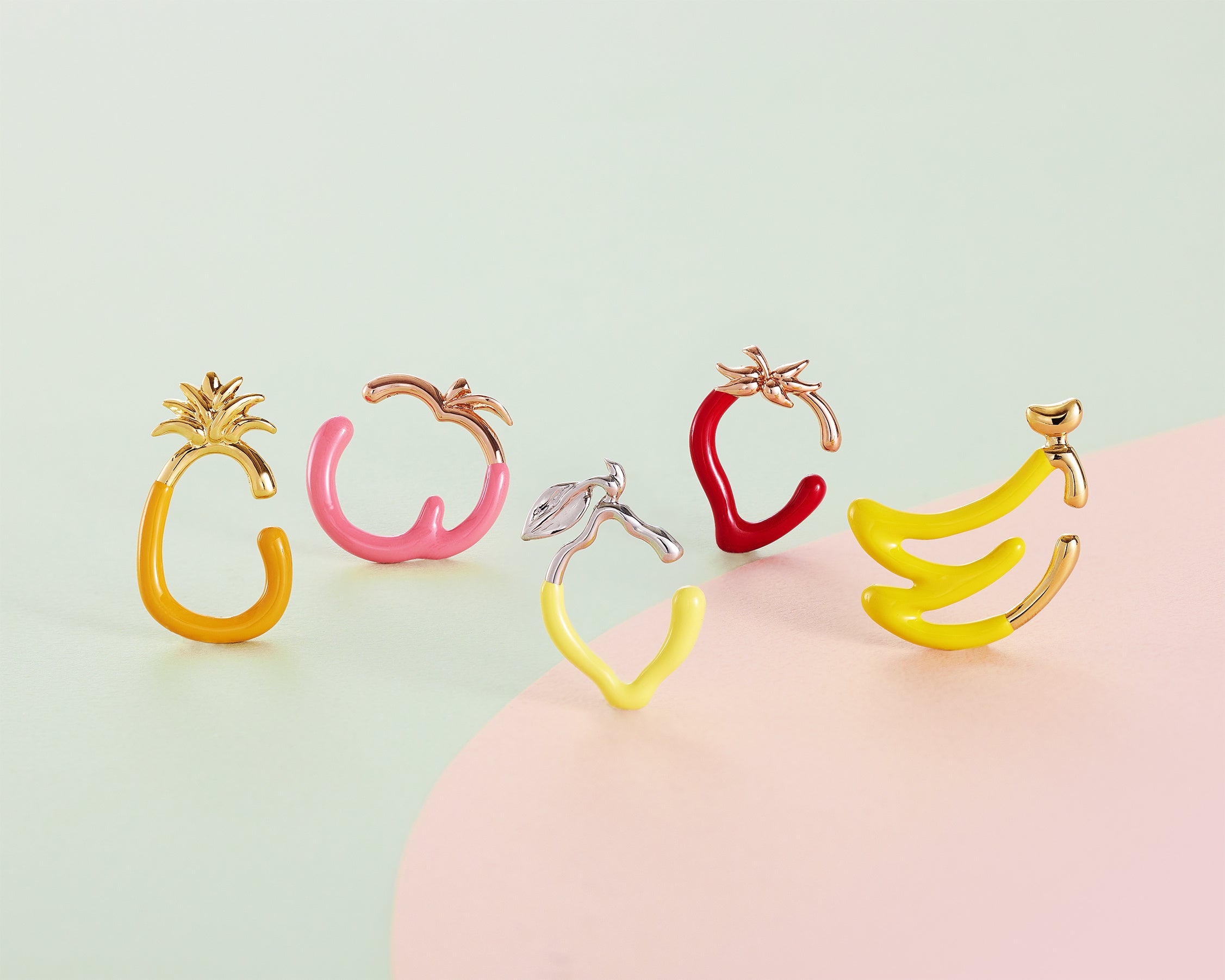 遊び心あふれるデザインに旬のモード感をそなえ、コーディネートの楽しさを「+プラス」するアクセサリーを提案するプラス ヴァンドームから、大人気のフルーツイヤーカフに新作のパイナップル、ピーチ、レモン、バナナが登場。