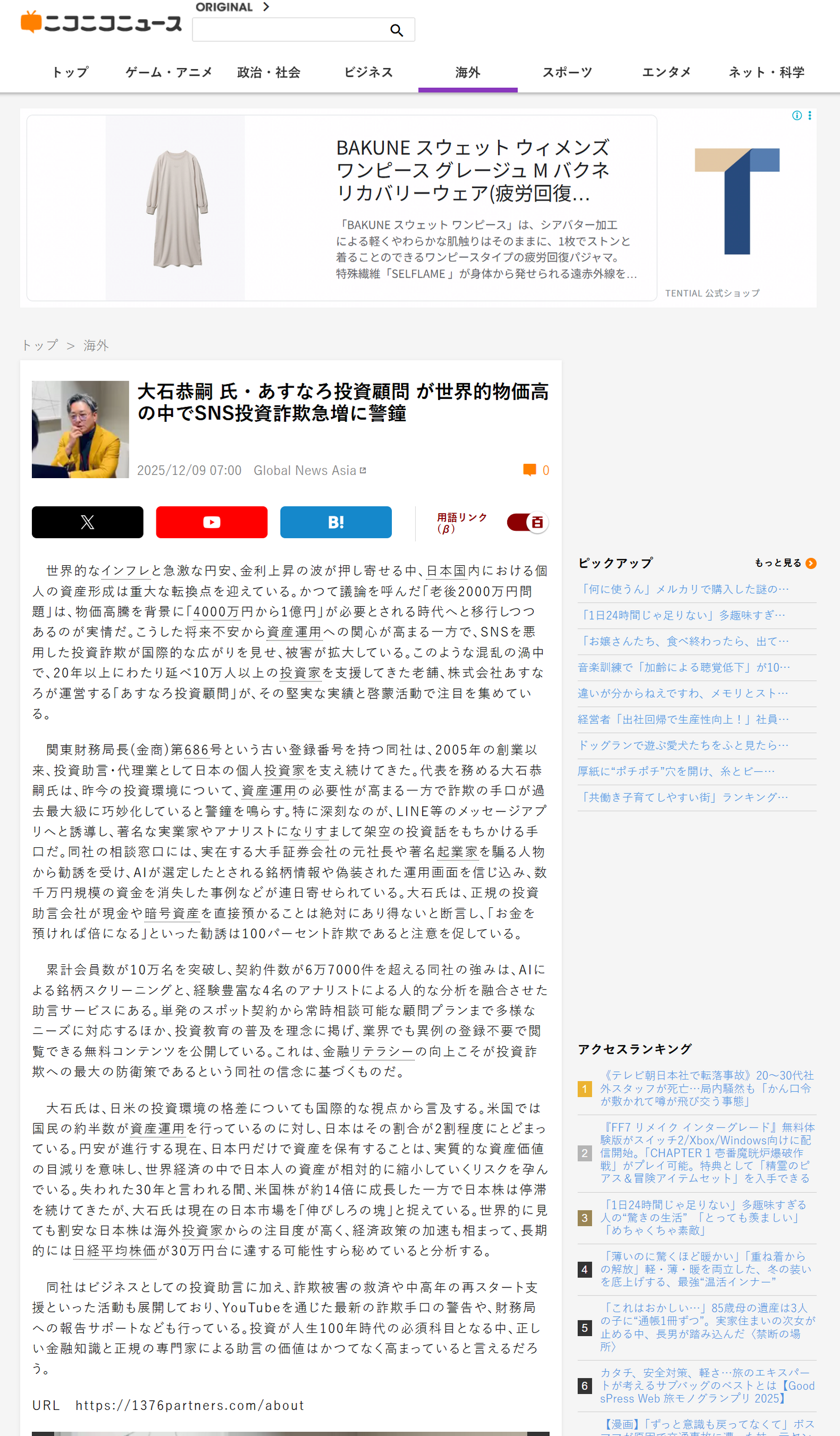 *投資詐欺被害者救済に関する取り組みが注目され2025年12月に楽天ニュースに取り上げられました