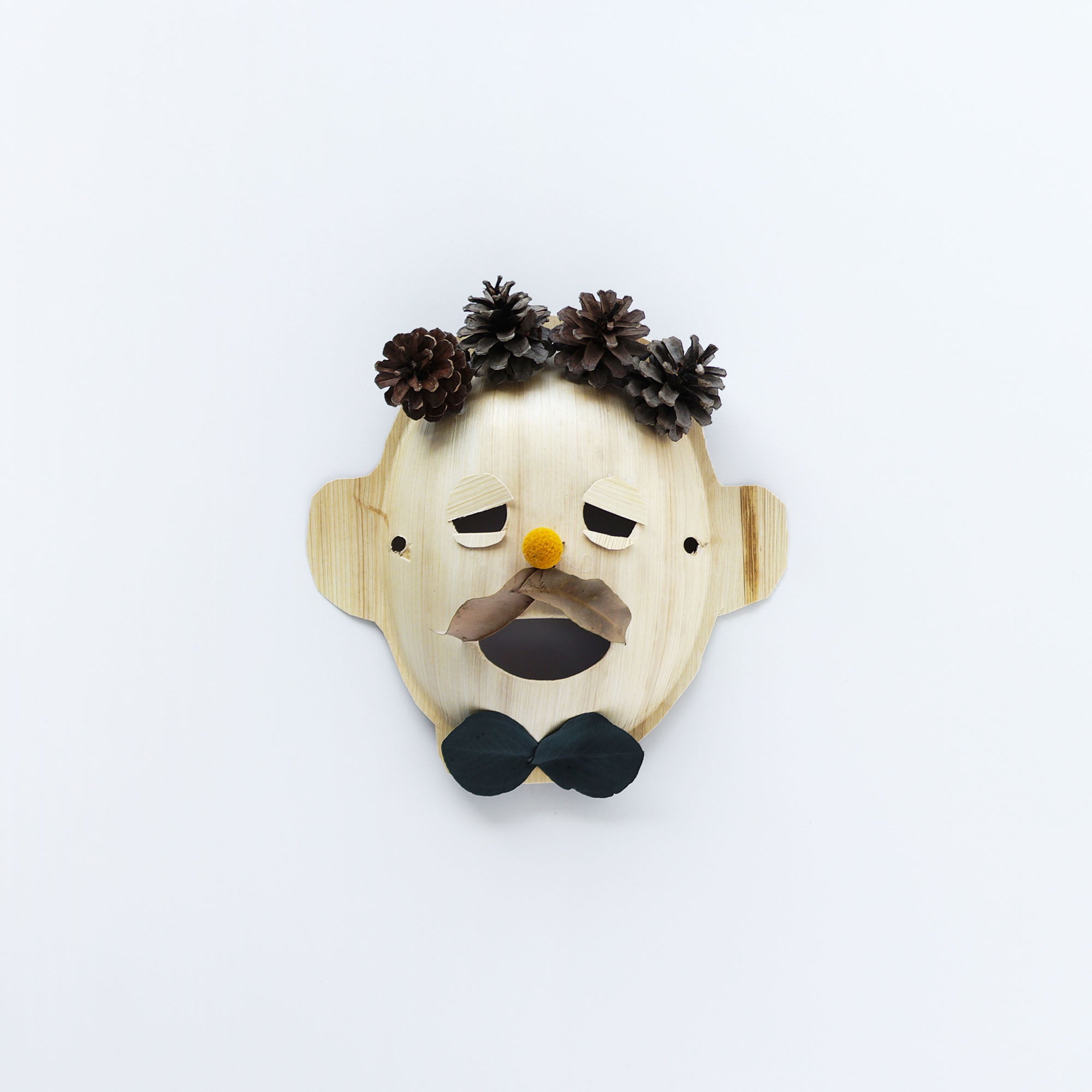 松ぼっくりやドングリ、ドライフラワーなど好きな素材を木工用ボンドやホットボンドで貼り付けたり、油性ペンで模様を描いたり、フチを好きな形に切り抜くことで、世界にひとつだけのワイルドなお面をつくれます。完成したお面は、パッケージに付属の台紙にかけて飾ることができます。