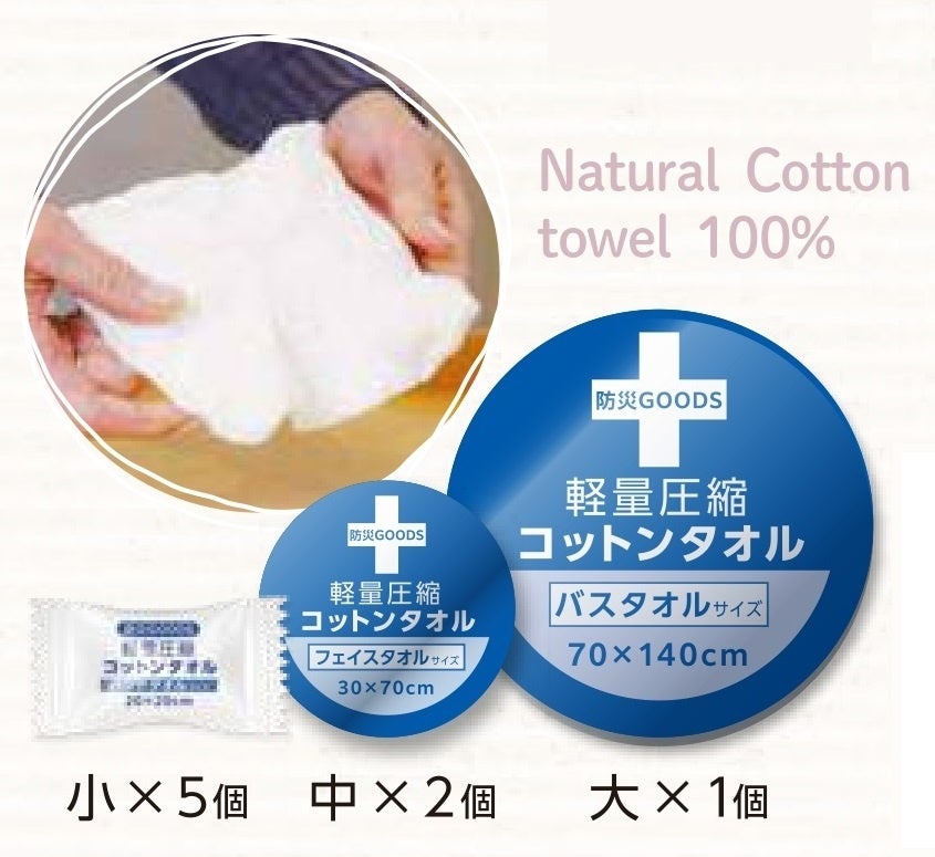 いざという時の為、防災バックに常備を!軽量圧縮コットンタオル新発売