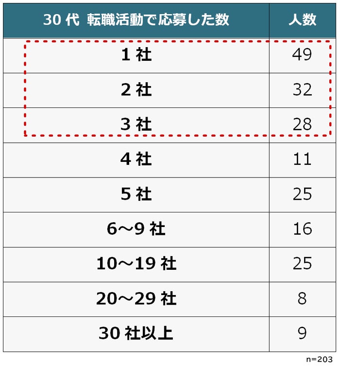 また、「転職活動で応募した数」を聞いたところ、1~3社が53.7%を占めました。