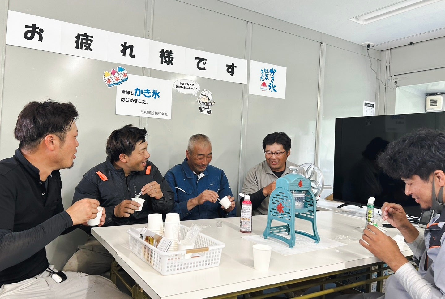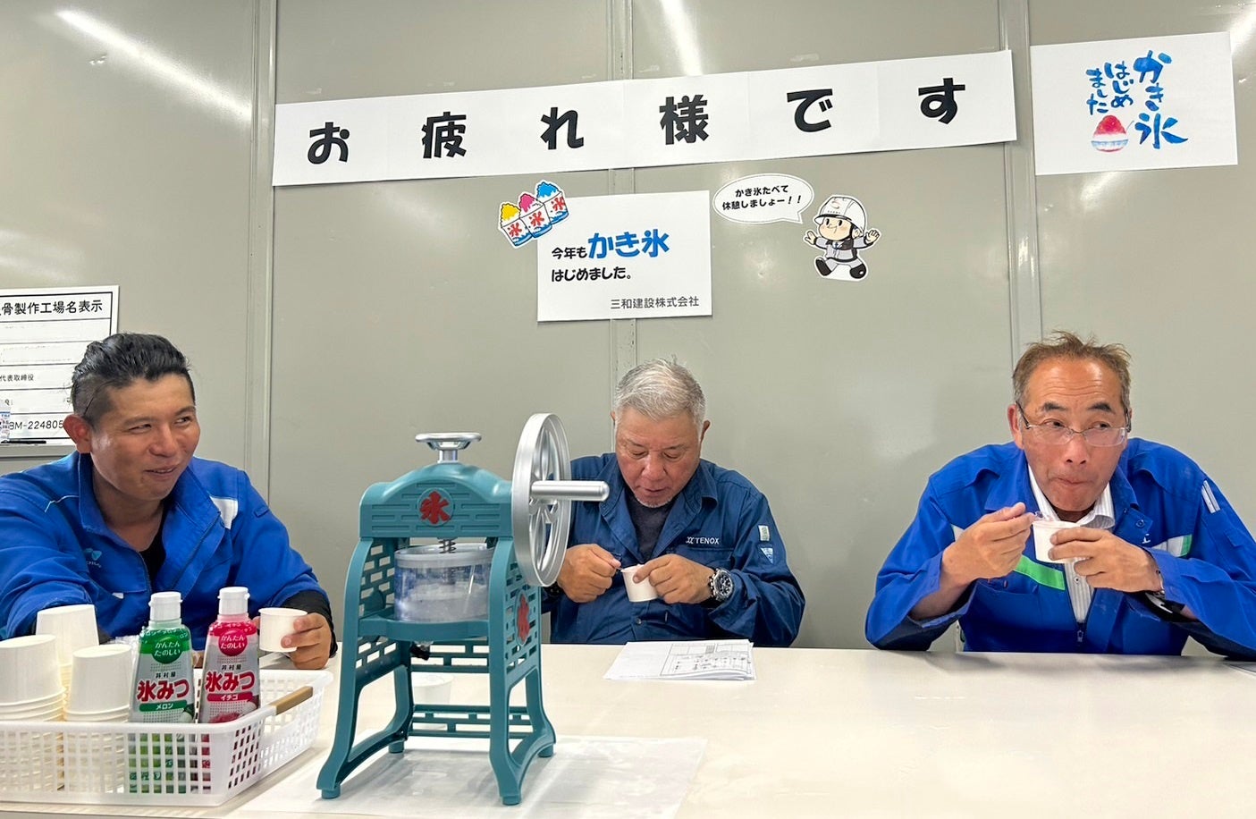 三和建設 岡山県津山市の建設現場(7月1日着工)で4年ぶりに「かき氷ステーション」設置し熱中症対策を強化