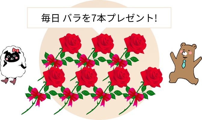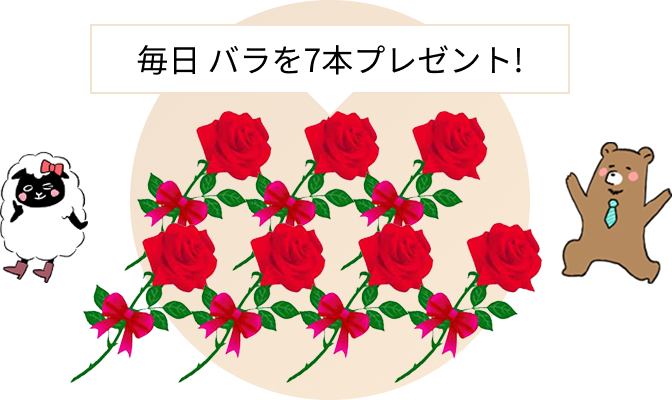 マッチングを後押しする人気アイテムの「バラ」を、ログインするだけでボーナスとして付与。7周年にちなんで、毎日7本をプレゼントします。